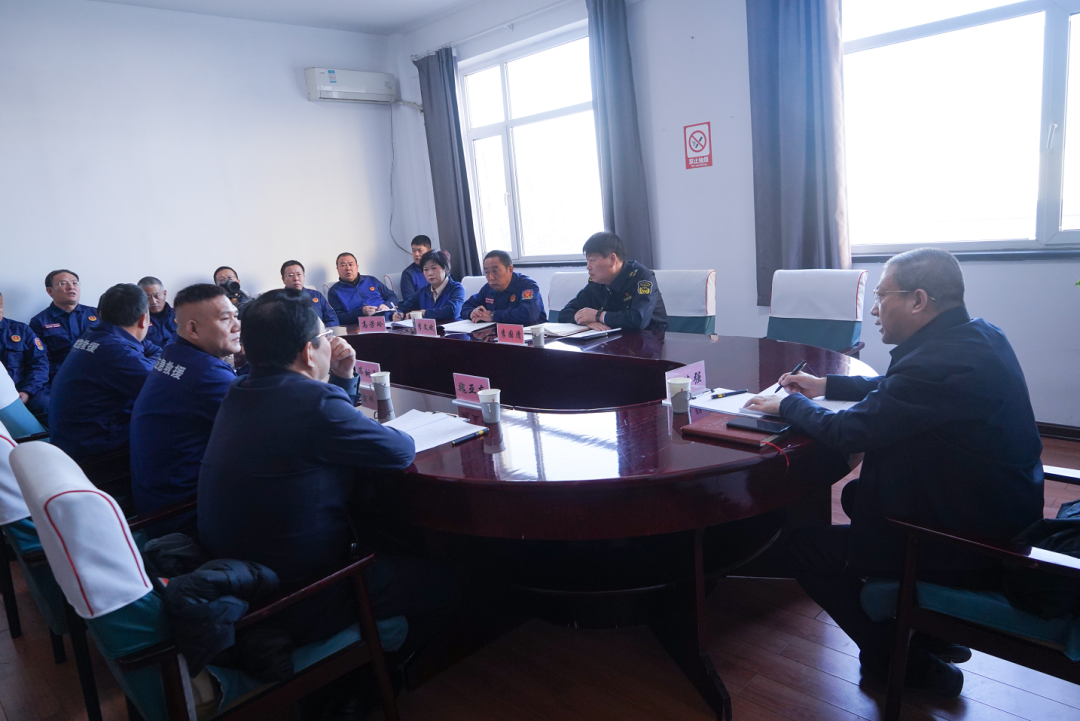 李俊强来到队里首先听取了市应急救援救护队队长毕树兵对2024年开展应急救援各项工作及2025年工作计划的汇报,与中队以上干部进行交流,详细了解队伍建设情况和救援装备配备情况,并对2025年市应急救援救护队的工作思路作了重点指导。